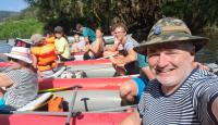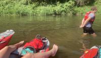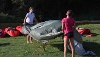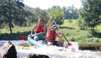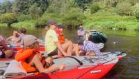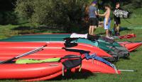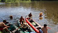 Poučeni pádlováním předchozího dne jsme druhý den plutí Berounky naplánovali do tábořiště U Mloka na 89,9 ř.km, což znamená jen 13,4km . Ale protože menší vzdálenost neznamená větší flákání, ani tentokrát nebyl čas na vyspávání a naopak rychle vstát, nasnídat, sbalit, převézt auta, po cestě dokoupit potřebné na svačinu i večeři a hurá na vodu. Teprve pak nastala pohoda, prostě pohodička. K naší radosti pár sjízdných jezů, otevřené občerstvení Na rybárně, kde sice ryby neměli, ale i tak jsme si tam dali oběd a samozřejmě vodní bitvy. Vzhledem k obrovskému horku a nemilosrdně pálícímu slunci docela žádaná kratochvíle. Kdo ještě od vyplutí nemněl, dokoupil vodní pistole/pumpy, které se ukázaly jako vynikající při vybírání vody z lodí, povětšinou rovnou stříknutou na souseda. Večeři tentokrát obstarali Brabrouci. Pak posezení u ohně a hraní a zpívání a jak kdo potřeboval šel spát.
