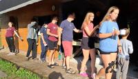 V neděli jsme se probudili stále ještě v Bojanově, čekalo nás velké balení, ale bylo těžké zjistit od znalých cestovatelů, co vše máme mít v zavazadle s sebou. Po celní kontrole jsme konečně nastoupili na nádraží do vlaku. Projeli jsme sedmi branami, které nám trochu zavařily mozky, ale zvládly jsme to a pak už nás na nádraží v Londýně vítala anglická pasová kontrola. Co se ale nestalo během poledního klidu. V Londýně proběhl velmi vážný kriminální čin a my jsme museli vypátrat všechny zločince, což bylo opravdu náročné. Pak jsme si ale oddechli při návštěvě Muzea moderního umění, kde bohužel někteří z nás neviděli nic :D. Protože nás muzeum velmi nadchlo, zkusili jsme namalovat vlastní umělecká díla a už nám visí v naší galerii. Nesmíme zapomenout na skvělé jídlo, které nás provází celou naší expedicí. Všude panuje dobrá nálada, ale žene se na nás bouřka, bůh ví (Renda), kde nás to ráno vyplaví :D