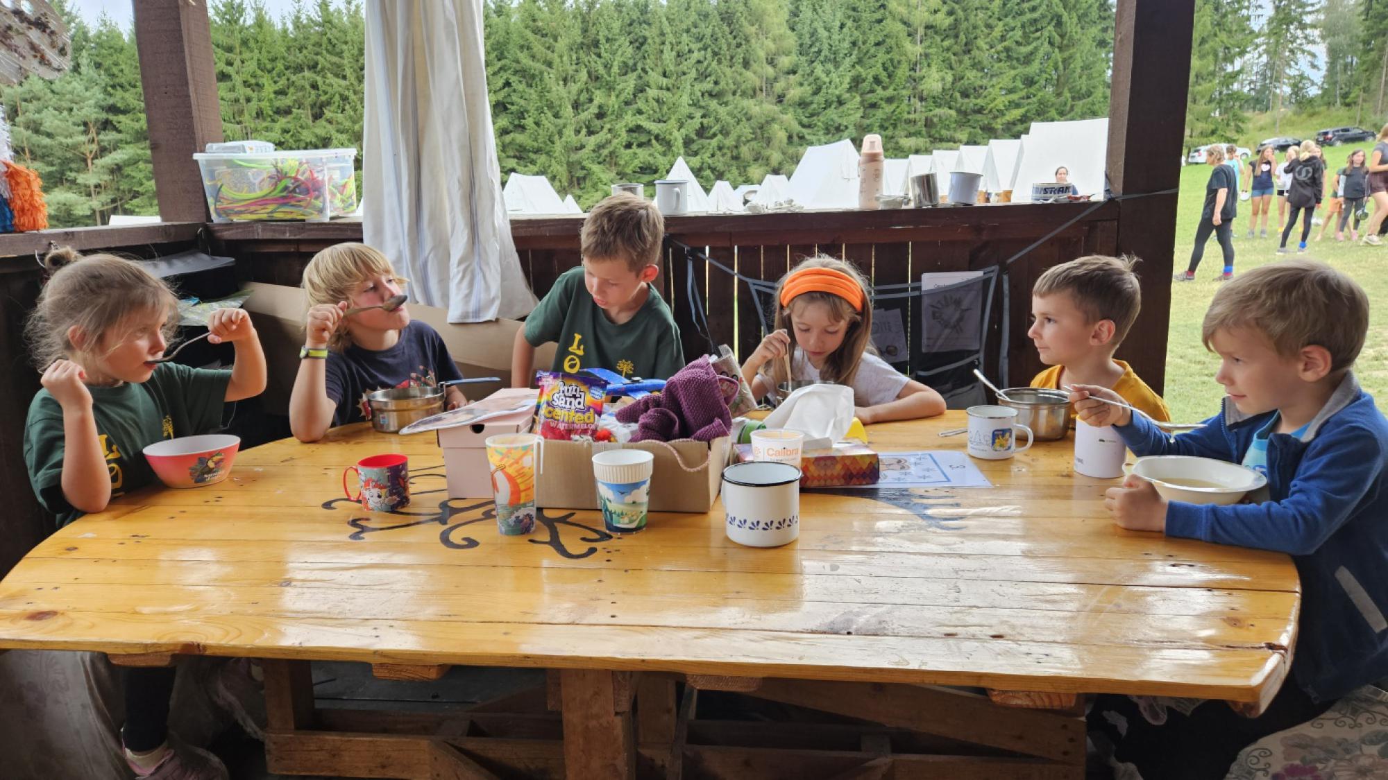 Dnes nás svou krásnou rozcvičkou probudila Želvička 🐢 – protáhli jsme se, zamávali sluníčku 🌞 a plní energie se vrhli na "nucené práce" 🧹🪵. Dopoledne nás čekala dobrodružná hra, kde jsme se prodírali houštím 🌿, brodili potokem 💧 a hledali úkryt před soupeřem 🕵️♂️. Odpoledne jsme si vyzkoušeli roli fast food pracovníků 🍔🍟 – řešili jsme objednávky, připravovali jídlo a doručovali ho zákazníkům co nejrychleji 🚴♂️📦. Den jsme zakončili několika parádními hrami 🎲, které pro nás vymysleli Nikča s Habym 🧠🎉.
