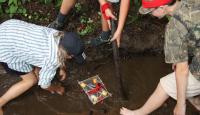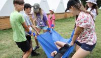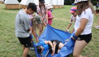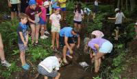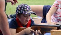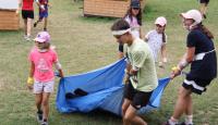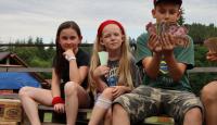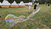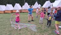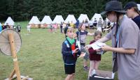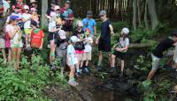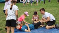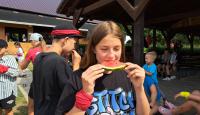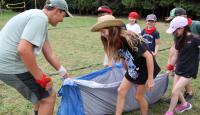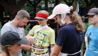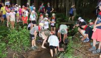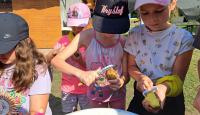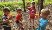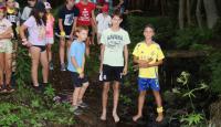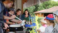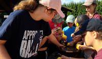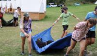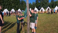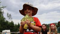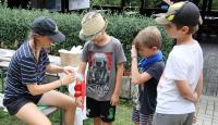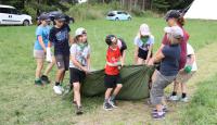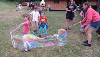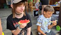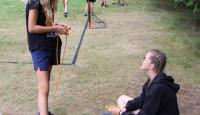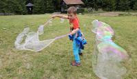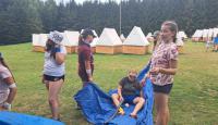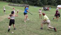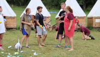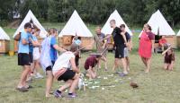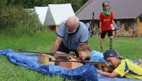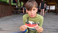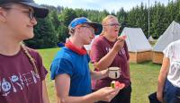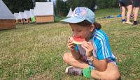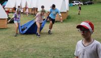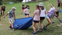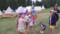 Dnešní den jsme odstartovali rozcvičkou od Habadabady, která nám spolehlivě rozhýbala nejen tělo, ale i bránice. Po ní nás čekala bohatá snídaně – kaiserky se salámem nebo šunkou. A kdo chtěl sladší začátek dne, sáhl po rohlíku s máslem a medem. Dopoledne proběhlo ve znamení "nucených prací" – zkrátka klasika, která k táboru patří. Odměnou nám byla dlouho vyhlížená dopolední svačina, šťavnatý meloun! Pak jsme chtěli pomoc indické rodině, která nás pohostila tím, že ji pomůžeme pochytat co nejvíce posvátných krav, abychom pozvedli její společenský status. Naši vedoucí na chvíli proměnili v posvátná zvířata a my jsme je museli odchytit a dotáhnout do ohrady. Po výborné česnečce a rajské s těstovinami jsme se pustili do další výzvy – stavby lodí na řeku Gangu, které jsme později odpoledne vypustili na našem potoku. Než jsme se k tomu ale dostali, dali jsme si ještě svačinu a krátce zameditovali v lese, abychom se vyladili na správnou duchovní vlnu. Na večeři jsme si pochutnali na oblíbené krupičné kaši. Večer jsme zakončili Pájohrami. Byl to pestrý a naplno prožitý den. Těšíme se, co nám přinese ten další!