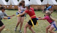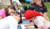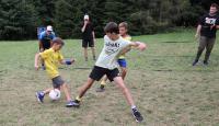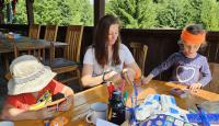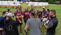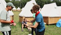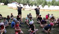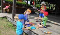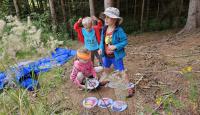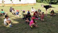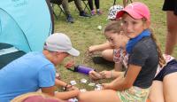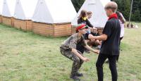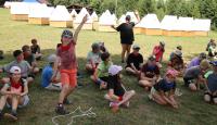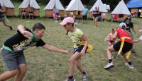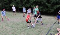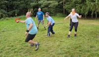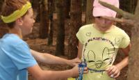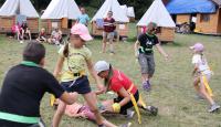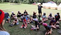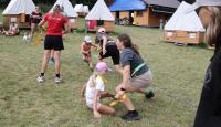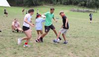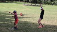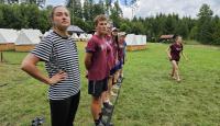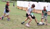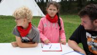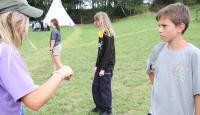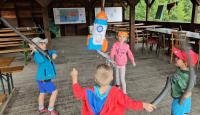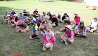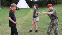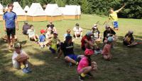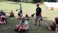 Dneska jsme dojeli do Indie. Nejprve jsme se vydali na místní tržiště, kde jsme museli doplnit nejnutnější zásoby na další cestu pro Willyho Fogga. Protože jsme nikomu nerozuměli, nákup proběhl pomocí posunků a kreslení, V poledním klidu si to mezi sebou rozdali vedoucí a instruktoři v Ringu. Vyhrála moudrost nad dravostí. Odpoledne proběhli turnaje ve fotbalu, mlátičce a ocáskované. Že jsme zkušení cestovatelé jsme prokázali sbíráním vlajek všech možných států do dvojic. Půlka na louce, druhá část v lese. Takové Pexeso. A šlo by nám to ještě rychleji, kdyby nás rozezlení domorodci nepřivazovali ke stromům. Protože děti rádi hrají Pexeso, dali jsme si ještě živou variantu na gesta. Den, kdy se střídalo slunečno se zataženo i s deštíkem, nám tak rychle utekl.
