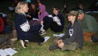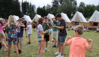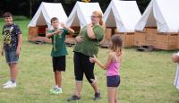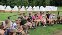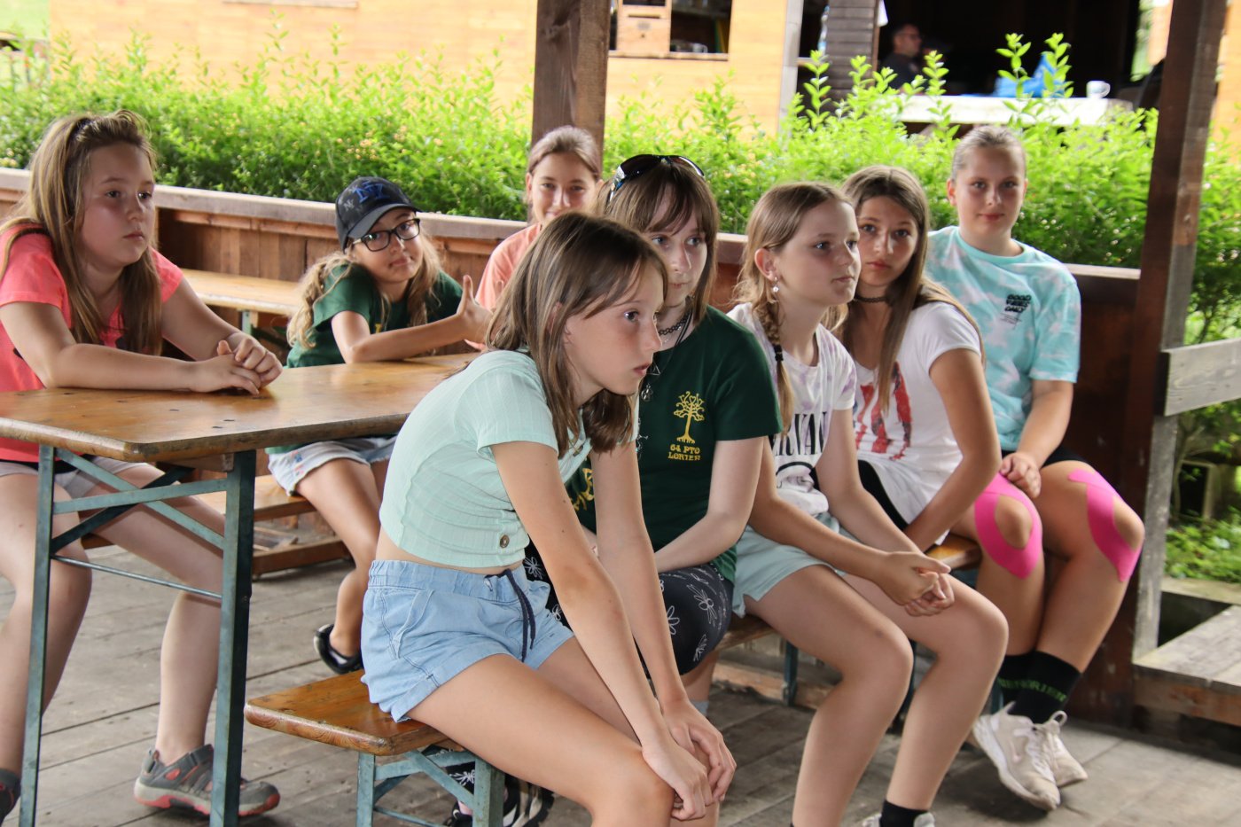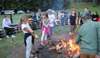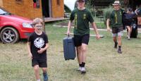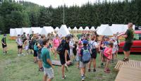 Hurá, hurá, hurá, tak jsme se tu zase po roce sešli plní sil a dobré nálady! Tento rok bude naše celotáborová hra Harry Potter na to jsme se všichni moc těšili! Na nádraží jsme se rozloučili s rodiči a vyšlápli jsme netradičně na autobus do Křižanova. Odtud jsme se vydali rovnou do tábora, kde jsme byli raz dva. Ubytovali jsme se do stanů, zahráli si nějaké seznamovací hry, opekli špekáčky a zazpívali písničky. Usínali jsme plní očekávání, zítra ráno nás totiž čeká velice důležité rozřazení do 4 Bradavických kolejí: Nebévíru, Mrzimoru, Havraspáru a Zmijozel.