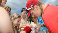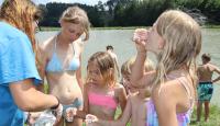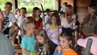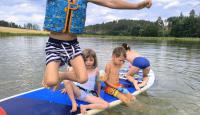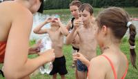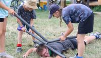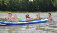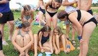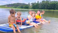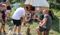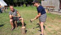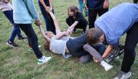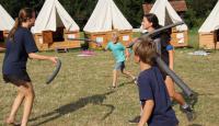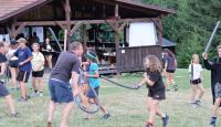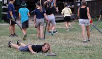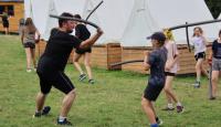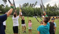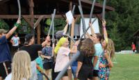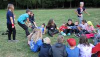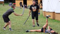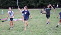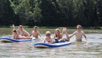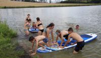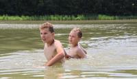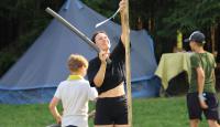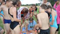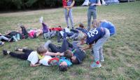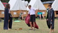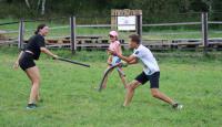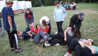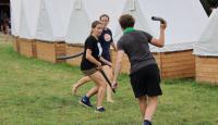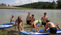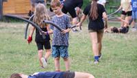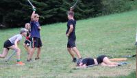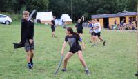 Dnes jsme měli předposlední hrací den, jako první jsme se hned po nucených pracích,vydali na rybník kde jsme se museli dostat přes jezero nemrtvých pomocí padlbordu a díky překonání této výzvy jsme získali medailon. Druhá hra byla že jsme pronásledovali bílou laň až k brodu kde byli meče a my je museli vzít do tábořiště a přeseknout nimi medailon. A jako poslední byl souboj mezi žáky a smrtijedy.