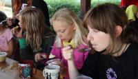 Středeční ráno jsme se vydali z Bradavické školy čar a kouzel do Godrikova dolu, kde jsme hledali Gringottovu banku. Cestou jsme ještě sehnali všechny ingredience na mnoholičný lektvar, díky kterému jsme se mohli nepozorovaně dostat do trezoru. Pro otevření trezoru, ve kterém se skrýval další viteál- pohár Helgy z Mezimoru, bylo potřeba najít ve městě trojčíselný kód. Všechny koleje úspěšně získaly pohár a zničily tak další viteál. Následoval krátký rozchod, kde se všichni stihli nacpat zmrzlinou a s plnými břichy vyrazili pěšky zpět do Bradavic. Na tábořišti nás čekal slavnostní oheň a pro mnoho dětí velká chvíle. Několik členů oddílu dostalo šátek nebo bylo povýšeno do vyšší hodnosti. Den jsme zakončili špekáčky a šlo se spát. Dobrou noc!
