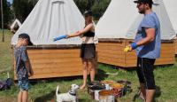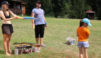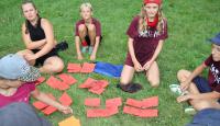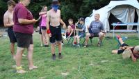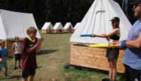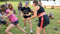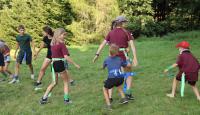 Po příjemném čtvrtečním ranním probuzení proběhla jestě příjemnější Pepinina rozcvička formou jógy, za kterou byla Pepina odměněna zaslouženým potleskem. Při první hře děti v nepořádku komnaty nejvyšší potřeby hledaly po kouscích diadém Roveny z Havraspáru, ale aby se v horku, jaké zajisté bylo, úplně neupekly, tak byly chytány Zložáry a haseny vodou u madam Pompfreyové. Druhá hra byla ve jménu lan, která představovala hada Naginiho, kterého měly jednotlivé družinky podle nápověd najít a vytáhnout z lesa. Následně se pokračovalo mezikolejovým turnajem v liškách. Den zakončil superkalifradžilistikexpialidózní Harry Potter kvíz, který si pro nás připravila Myška a mozkové závity procvičil i těm nejznalejším v tohoto tématu.