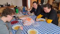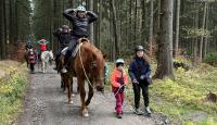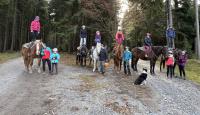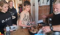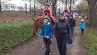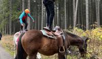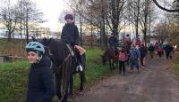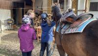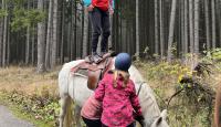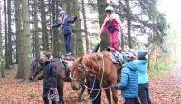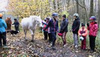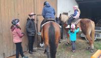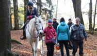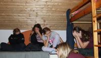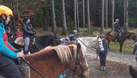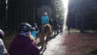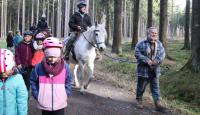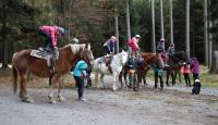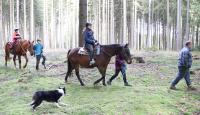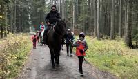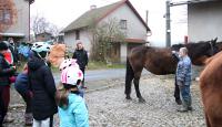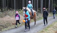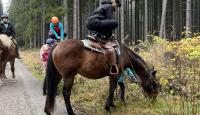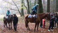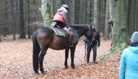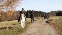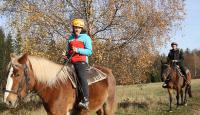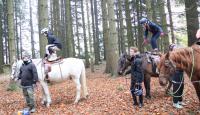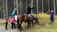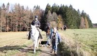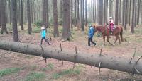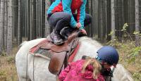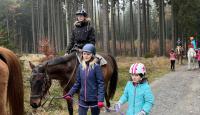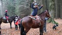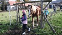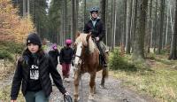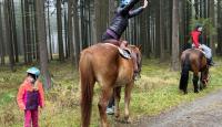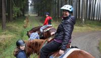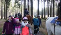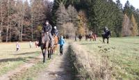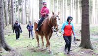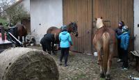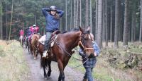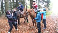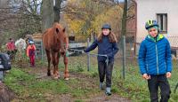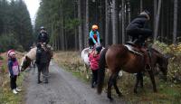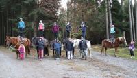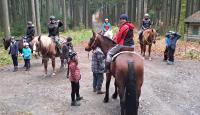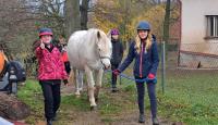 Tuto výpravu jsme netradičně zajeli na Svobodný statek do Chlumětína, kde jsme prožili celý víkend u koní. Od chycení a odvedení z ohrady, přes hřebelcování, nasedlání, zauzdování až po projížďku. A nejednalo se jen o nějaké to vození. Břéťa se nás snažil naučit i ovládání koně a došlo i na chvilku klusání. A také trochu toho blbnutí. Pokud jsme zrovna nebyli u koní, tak proto, že jsme jedli, hráli večerní hry, nebo unavení spali.