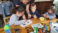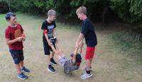 Den začínal rozcvičkou, kterou měla Žbluňk. Kvůli rannímu deštíku musela proběhnout v jídelně. Po té byly nucené práce, v prvním bloku her bylo nutné najít a rozeznat správné recepty. K obědu byl skvělý řízek s bramborem a okurkový salát. Po poledním klidu k nám portálem prolezly do světa příšery z podsvětí. Děti musely rozhodnout, které jméno patří ke které příšeře a poté je dostat zpět do pekla. Následovala všemi oblíbená hra 1000 mil, v letošním případě 1000 kostiček. V podvečer přišel čas craftěni a ostatní mezi tím hrály hry s Dendou.