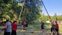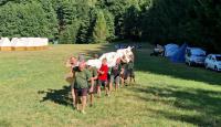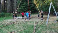 Rok se s rokem sešel a naše tábořiště opět ožilo spoustou dětí, instruktorů a vedoucích. Letošní celotáborová hra se ponese v duchu Pokémonů. Na nádraží jsme se rozloučili s rodiči a vydali se na vlak, který nás dovezl až do Ořechova. I přes velkou výheň jsme došli do tábora. Po cestě nám k přežití napomohl blízký rybník do kterého jsme naskákali abychom se alespoň trochu ochladili. Po rozřazení do týmu jsme večer opekli špekáčky, vedoucí se snažili postavit nové tee-pee, které na čtvrtý pokus stálo.