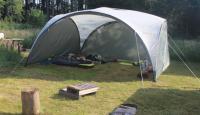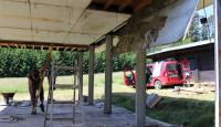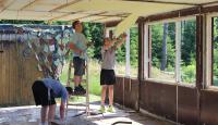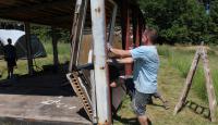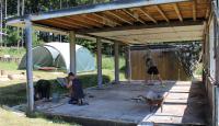 V Brně jsme u Bobíka naložili tašky a na tábořišti je vyložili. Začali jsme rozbíjet původní jídelnu. Zbytek čeká na další víkend.