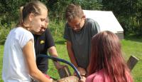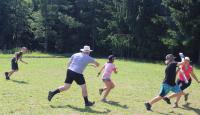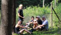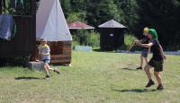 Čtvrteční pohádkou byla O pejskovi a kočičce. První hru jsme si hráli na mouchy a kladli vajíčka na jídlo, které pejsek s kočičkou zapomněli uklidit. Vedoucí nás přitom chytali Biolitem, mucholapkou, novinami a plácačkou. Po obědě nás čekala hra, kde jsme si sbírali suroviny do dortu, který pejsek s kočičkou vařili. V táboře se tyto suroviny přeměnily na suroviny, které pro nás byly svačinou. Letos poprvé jsme navštívili rybník a pořádně se vykoupali.