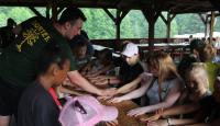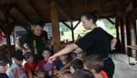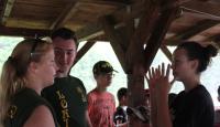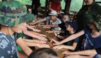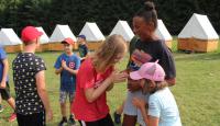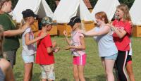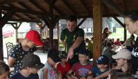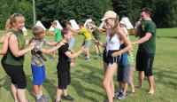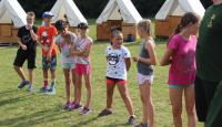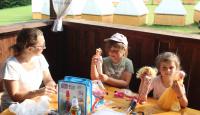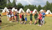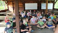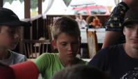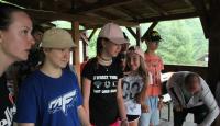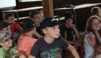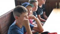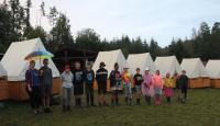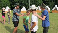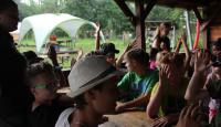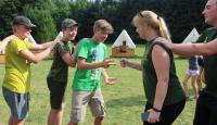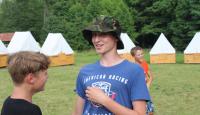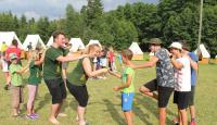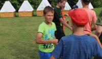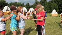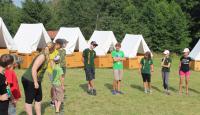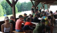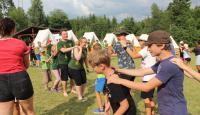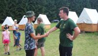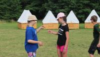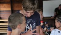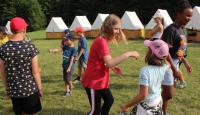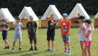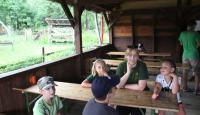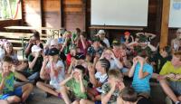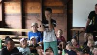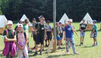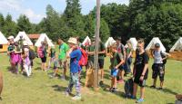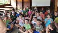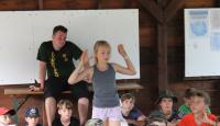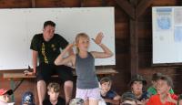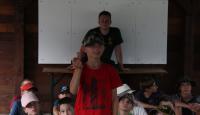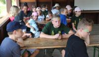 Letošní táborové dobrodružství s Shakesem & Fidgetem začalo již v Brně na parkovišti, kdy se děti rozloučily se svými rodiči. Cesta od vlaku se šla lesem a za krásného počasí. Vybalování věcí taky proběhlo raz dva, takže jsme byli připravení se seznámit s letošní celotáborovkou. Zjistili jsme, že Shakes & Fidget jsou né úplně schopní bojovníci, kteří potřebují naši pomoc. Hlavní postavy Čaroděj, Průzkumník, Válečník a Druid sestaví z našich zatím energií nabitých dětí družiny a pokusí se Shakesovy & Fidgetovy pomoct vyhrát velice náročnou bitvu proti zlým skřetům. Jsme úplně na začátku dlouhé cesty za úspěchem, a tak do toho musíme dát v dalších 14 dnech všechno.