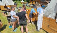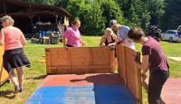 Stavěčka hotová, pot a smích prolity – děkujeme! Tábořiště stojí, kladiva odpočívají a záda nás bolí tak akorát, abychom věděli, že jsme něco dokázali. Dík všem, co dorazili, makali, jedli, smáli se, nosili klády, hledali klíče velikosti 10 nebo jen správný konec lana. A protože co se postaví, to se musí i zbourat, zapiš si 23.–24. 8. 2025 – bouračka! Přijeď pomoct, rozloučit se s létem a užít si poslední akci sezóny. Tak koukni na fotky, ať víš, do čeho jdeš příště!