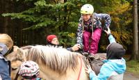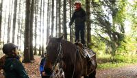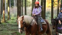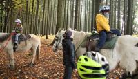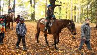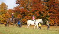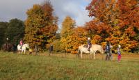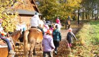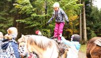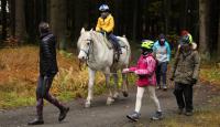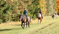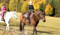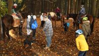 Jak se říká: Nejkrásnější pohled na svět je ze hřbetu koně! A navíc když je ještě kolem spousta kamarádů a sluníčko osvítí nádhernou podzimní přírodu, nemá to chybu. Tento víkend jsme si vyjeli na statek k Břéťovi do Chlumětína a po oba dva dny jsme se učili spolupracovat s koňmi. Vyvést je z ohrady, vykartáčovat, osedlat, nasadit udidlo, vyčistit kopyta, nasednout, projet se, odsedlat a zavést zpátky do ohrad. No a ve volném čase doplnit energii. Jídlem, spaním, hraním na kytaru, kulečníku, či městečka Palermo. A bylo to super!